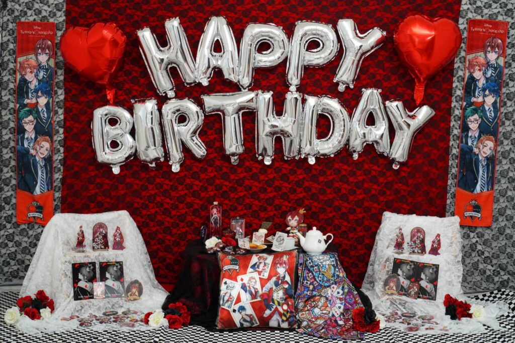 R氏こだわりのポイントとして、写真では目立たない小物の類や、食器類も推しキャラクターをイメージしたもので統一し、センスよく飾り付けているという。